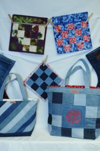 I am a stay-at-home Farmer’s Wife who is on call 24/7 with our farming and trucking operations. Sewing gives me something to do in my spare time but also allows me to leave the house at the drop of a hat. I have been married to my husband Dave for over 30 years, and we have 3 grown children and 7 beautiful grandchildren. I absolutely love being in my workshop creating and sewing doll clothes. I also enjoy making items with recycled denim, such as bags, potholders and Christmas stockings. Quilted Cosmetic bags are also one of my favorite things to do with quilt remnants.